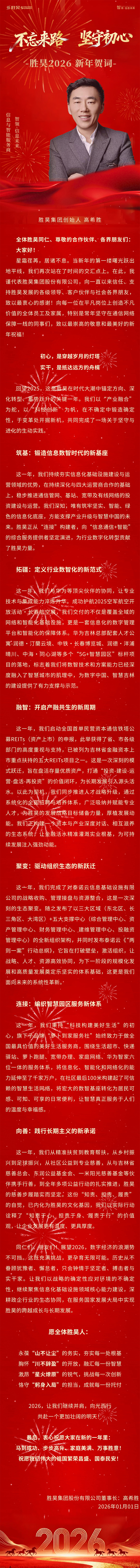 不忘来路 坚守初心丨胜昊2026新年贺词