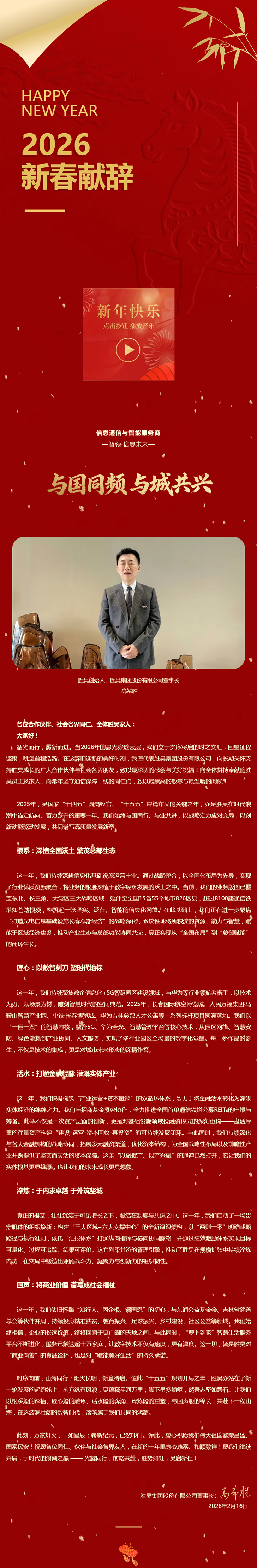 与国同频 与城共兴丨胜昊创始人高希胜2026年新春献辞