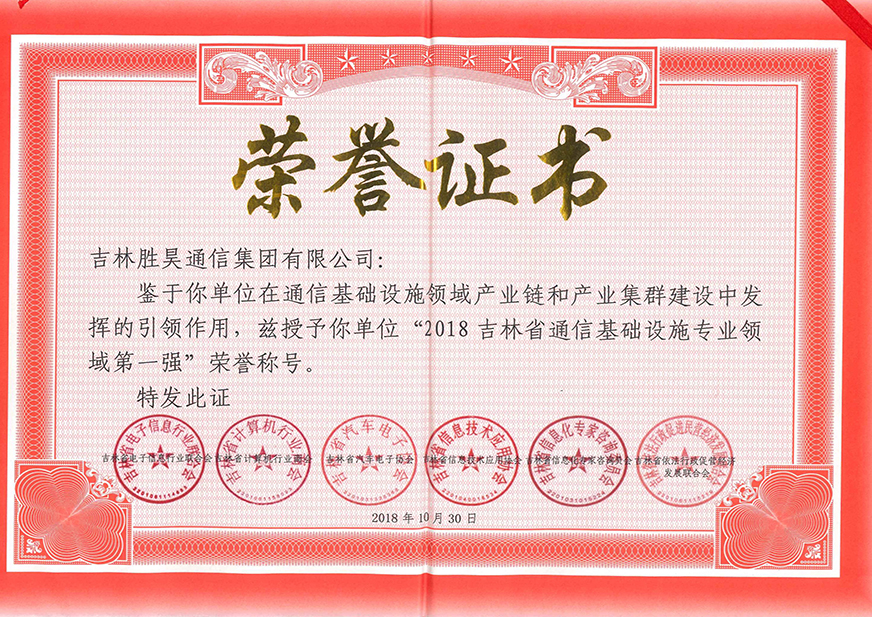 胜昊通信集团荣获2018年吉林省通信基础设施专业领域第一强