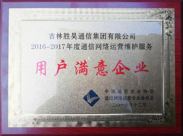 吉林胜昊通信集团荣获2016-2017年度通信网络运营维护服务用户满意企业