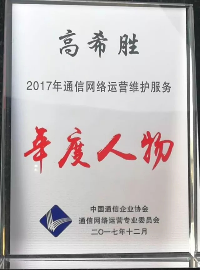 根据吉林胜昊通信集团有限公司董事长高希胜、延边国胜通信基础设施投资有限公司总经理刘霖的先进事迹,经行业专家评审、网站对外公示的流程,高希胜、刘霖分别被专委会评为“2017年通信网络运营维护服务年度人物”。