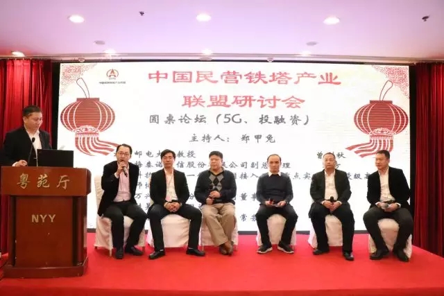 随后由中国民营铁塔产业联盟秘书长郑甲兔主持圆桌论坛,北京邮电大学教授曾剑秋、北京梅泰诺通信股份有限公司董事长张志勇、吉林胜昊通信集团总裁王春亮、华中科技大学下一代互联网接入国家重点实验室教授级高级工程师、博士杜军、杭州万兴科技股份有限公司董事长赵欣荣、浙江龙票融资租赁有限公司常务副总钱阮富围绕“共建共享 合作共赢”这一主题就通信塔、社会塔、电力塔融合发展; 5G、物联网及增值业务;金融资本如何为通信基础设施服务三方面进行深入的交流与探索。