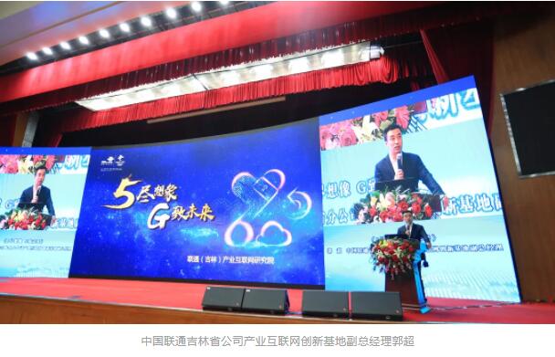 中国联通吉林省公司产业互联网创新基地副总经理郭超就“5尽想象,G致未来”主题演讲。