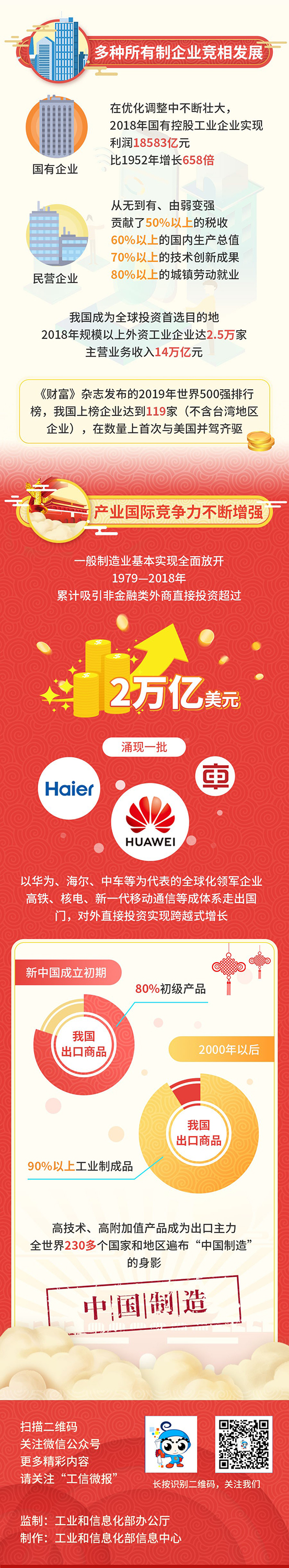 新中国成立70年来,我国工业和信息化发展取得举世瞩目的成就,跃升为世界第一制造业大国和世界网络大国,为中华民族迎来从站起来、富起来到强起来的历史性飞跃提供了强有力支撑。具体取得了哪些成就?一图读懂↓↓