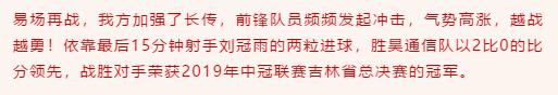 2019年中冠联赛吉林省总决赛冠军出炉:胜昊通信足球队将有资格代表吉林省冲击2020年中冠联赛