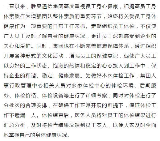 以人为本情系员工 健康体检温暖人心
