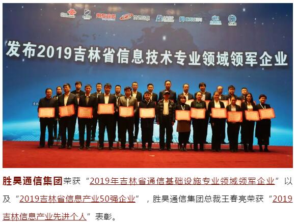 胜昊通信集团荣获“2019吉林省信息产业50强企业”、“通信基础设施专业领域领军企业”荣誉称号!