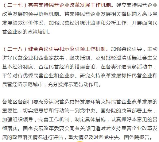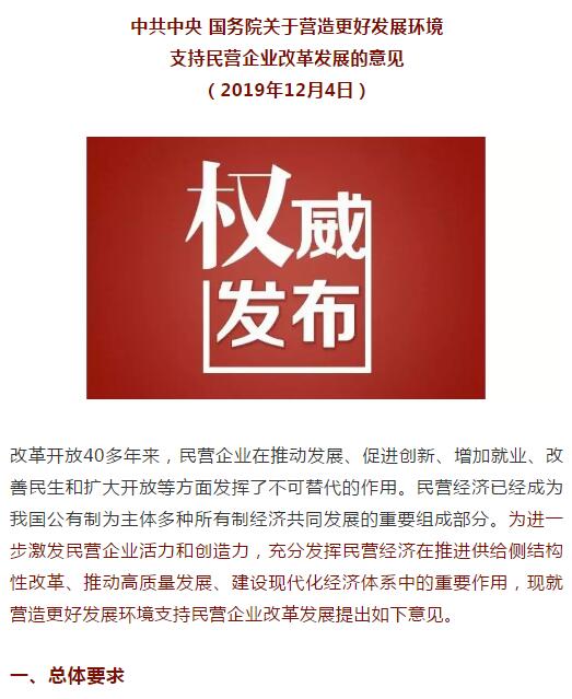 中共中央国务院关于营造更好发展环境 支持民营企业改革发展的意见
