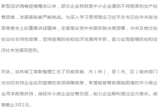 吉林省应对疫情支持中小企业发展出台了哪些政策?