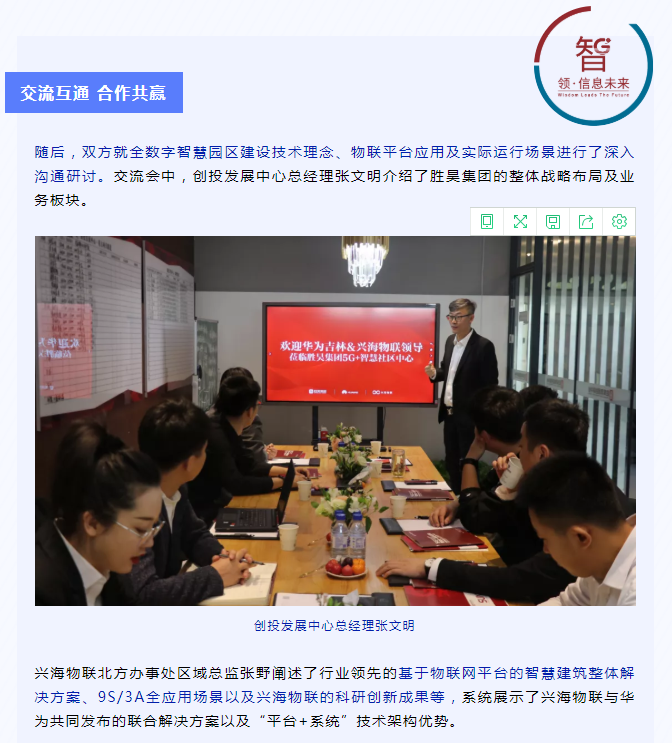 胜昊&华为&兴海物联开展技术交流 联袂打造5G+智慧社区项目