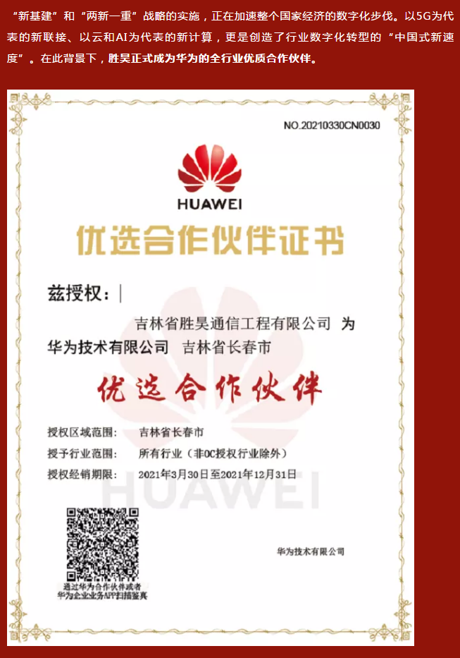 联合创新 智慧引领 | 胜昊成为华为全行业优选合作伙伴