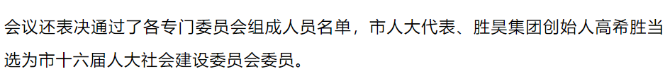市人大代表、集团创始人高希胜参加长春市第十六届人民代表大会第一次会议履职尽责