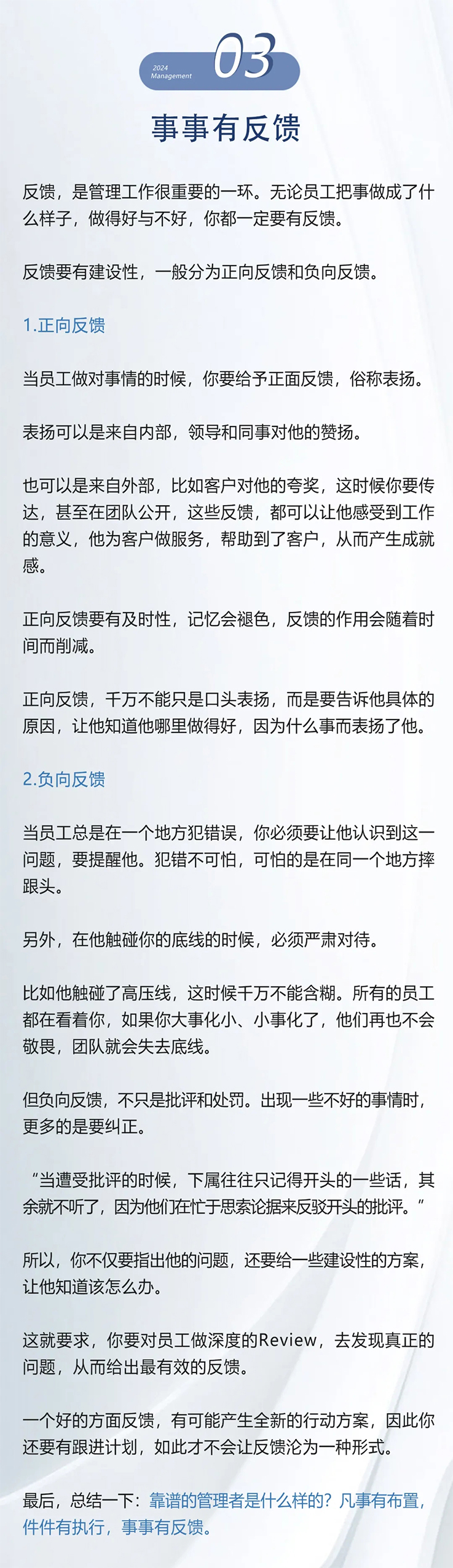 靠谱的管理者是什么样的?今天与你一起探讨。 “兵熊熊一个,将熊熊一窝。”要打胜仗,管理者的角色至关重要。 那么,靠谱的管理者是什么样的? 就是:凡事有布置,件件有执行,事事有反馈。